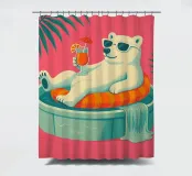 A whimsical and vibrant illustration of a polar bear living its best life — sunglasses on, cocktail in paw, and floating in a kiddie pool with a mini waterfall. Set against a hot pink tropical backdrop, this artwork brings a splash of humour and chill vibes to any space. Perfect for lovers of quirky art, retro aesthetics, and laid-back attitude. Whether for your living room, office, or summer home — this piece guarantees smiles.