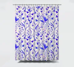 Whimsical aquatic coastal pattern with rolling ocean waves in cobalt blue and aqua blue, on a light blue background.