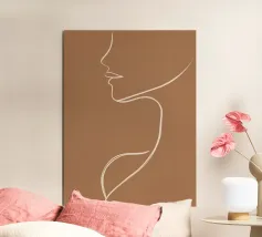 Maximum reduction as an expression of depth: this minimalist, contoured drawing of a female silhouette unfolds a quiet power with just a few skilful lines. The warm colour scheme - creamy white on brown - is reminiscent of classic sepia sketches. The elegant sweep of the line evokes Matisse's late silhouettes, while the abstract form leaves plenty of room for projection and intuition. A work that doesn't show, but hints - and that is precisely why it touches. Ideal for bright, minimalist architectural spaces.