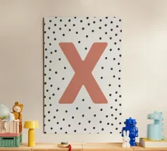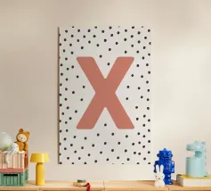The playful design with the letter "X" in bright red on a black dot pattern is a stylish eye-catcher. Perfect for children's rooms, modern living spaces or as a gift idea with a personal touch. The clear typography combined with a Scandinavian-inspired pattern adds a charming accent to any room. Ideal for combining with other letters from the series.