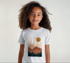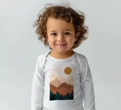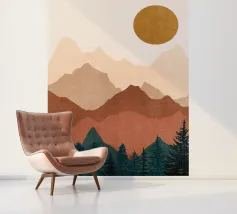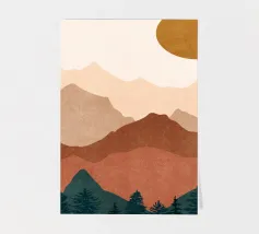A beautifully minimalistic mountain landscape at sunset, featuring layered earthy tones and a serene forest silhouette. These artworks are perfect for bringing warmth and nature into any space. Part of a cohesive set, the designs showcase a tranquil, Wabi-Sabi-inspired aesthetic, ideal for nature lovers and fans of minimalist decor