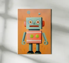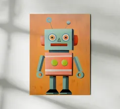 Bring a retro charm to your space with this vivid robot wall art, featuring a quirky and colorful robot on a warm orange background. The playful design and bold geometric details make this artwork a delightful addition to nurseries, playrooms, or even contemporary interiors that celebrate fun, creativity, and nostalgia. Imagine this quirky robot poster brightening a playroom, serving as a centerpiece in a nursery, or adding character to a modern office or studio. Its retro vibe and fun design make it versatile and inspiring.