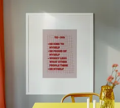 Hey, I'm Xenia! Originally an architect, but at some point I finally followed my heart - so I took the plunge and started my own business as a graphic designer. Mental health is a huge topic for me because I've unfortunately experienced first-hand how much it can affect your life. That's why I put all my love into designs that remind you to be good to yourself. I firmly believe that affirmations - especially as wall art - can gradually reprogramme our subconscious towards more self-love and positivity. My style? Colourful, trendy, a little retro and with a pinch of playful childishness - because we can all allow ourselves a little more lightness in life. Glad you're here! 💛