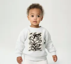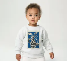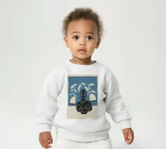 Our baby sweatshirts are made from 85% organic cotton and 15% recycled polyester.