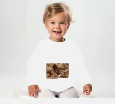 Our baby sweatshirts are made from 85% organic cotton and 15% recycled polyester.