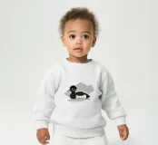 Our baby sweatshirts are made from 85% organic cotton and 15% recycled polyester.