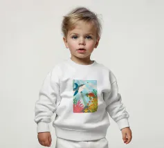 Our baby sweatshirts are made from 85% organic cotton and 15% recycled polyester.