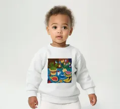 Our baby sweatshirts are made from 85% organic cotton and 15% recycled polyester.