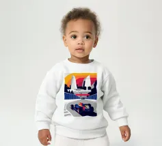Our baby sweatshirts are made from 85% organic cotton and 15% recycled polyester.