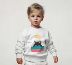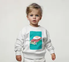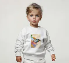 Our baby sweatshirts are made from 85% organic cotton and 15% recycled polyester.