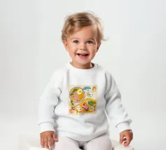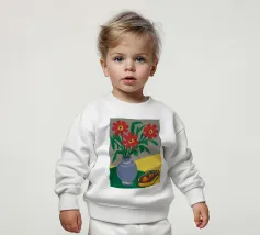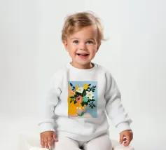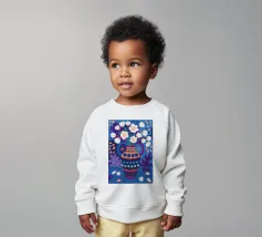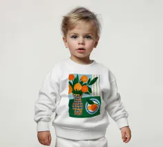 Our baby sweatshirts are made from 85% organic cotton and 15% recycled polyester.