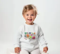 Our baby sweatshirts are made from 85% organic cotton and 15% recycled polyester.