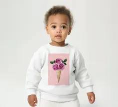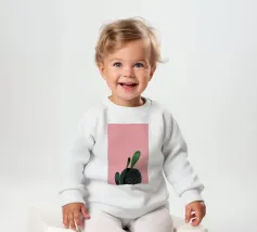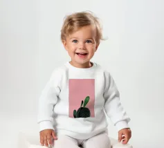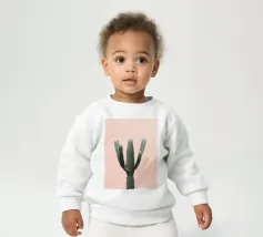 Our baby sweatshirts are made from 85% organic cotton and 15% recycled polyester.