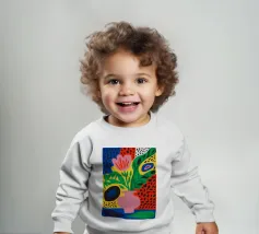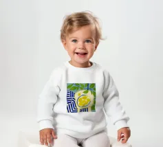 Our baby sweatshirts are made from 85% organic cotton and 15% recycled polyester.