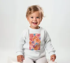 Our baby sweatshirts are made from 85% organic cotton and 15% recycled polyester.