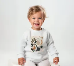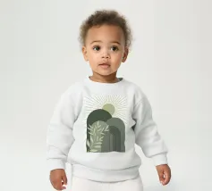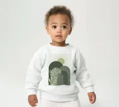 Our baby sweatshirts are made from 85% organic cotton and 15% recycled polyester.
