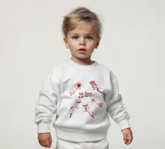 Our baby sweatshirts are made from 85% organic cotton and 15% recycled polyester.
