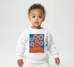 Our baby sweatshirts are made from 85% organic cotton and 15% recycled polyester.