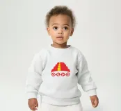 Our baby sweatshirts are made from 85% organic cotton and 15% recycled polyester.
