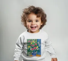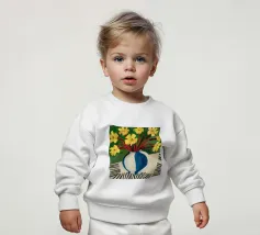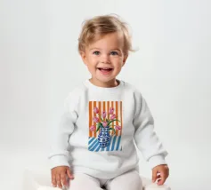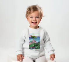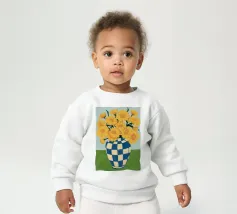 Our baby sweatshirts are made from 85% organic cotton and 15% recycled polyester.