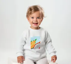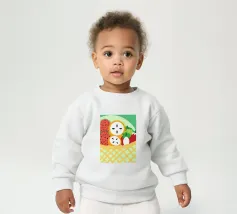 Our baby sweatshirts are made from 85% organic cotton and 15% recycled polyester.