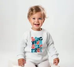 Our baby sweatshirts are made from 85% organic cotton and 15% recycled polyester.