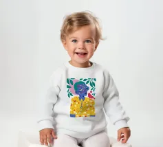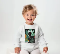Our baby sweatshirts are made from 85% organic cotton and 15% recycled polyester.
