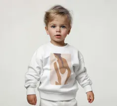 Our baby sweatshirts are made from 85% organic cotton and 15% recycled polyester.