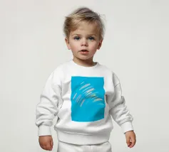 Our baby sweatshirts are made from 85% organic cotton and 15% recycled polyester.