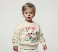 Our baby sweatshirts are made from 85% organic cotton and 15% recycled polyester.