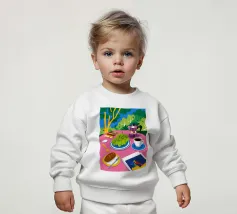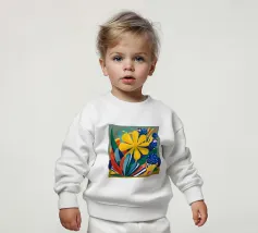 Our baby sweatshirts are made from 85% organic cotton and 15% recycled polyester.