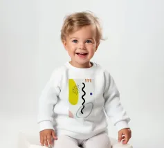 Our baby sweatshirts are made from 85% organic cotton and 15% recycled polyester.