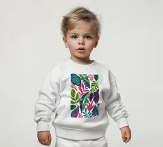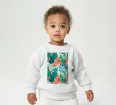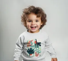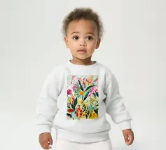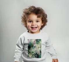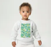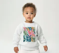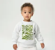 Our baby sweatshirts are made from 85% organic cotton and 15% recycled polyester.