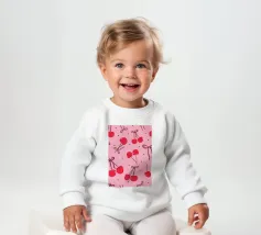 Our baby sweatshirts are made from 85% organic cotton and 15% recycled polyester.