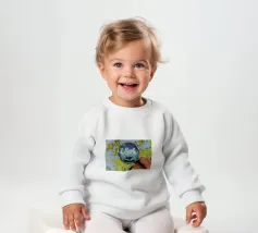 Our baby sweatshirts are made from 85% organic cotton and 15% recycled polyester.