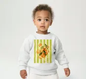 Our baby sweatshirts are made from 85% organic cotton and 15% recycled polyester.