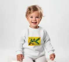 Our baby sweatshirts are made from 85% organic cotton and 15% recycled polyester.