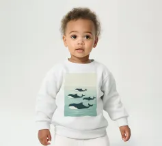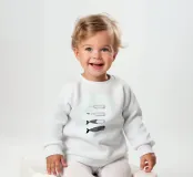 Our baby sweatshirts are made from 85% organic cotton and 15% recycled polyester.