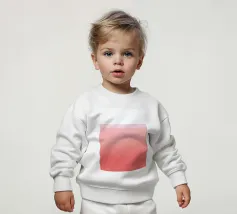 Our baby sweatshirts are made from 85% organic cotton and 15% recycled polyester.