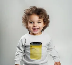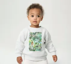 Our baby sweatshirts are made from 85% organic cotton and 15% recycled polyester.