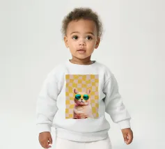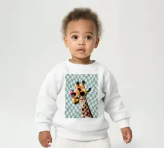 Our baby sweatshirts are made from 85% organic cotton and 15% recycled polyester.