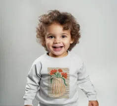 Our baby sweatshirts are made from 85% organic cotton and 15% recycled polyester.