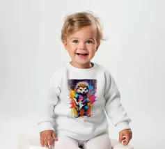 Our baby sweatshirts are made from 85% organic cotton and 15% recycled polyester.