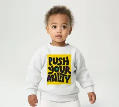Our baby sweatshirts are made from 85% organic cotton and 15% recycled polyester.