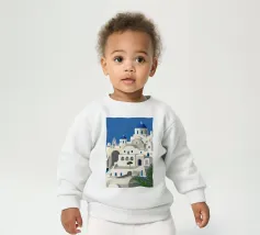 Our baby sweatshirts are made from 85% organic cotton and 15% recycled polyester.