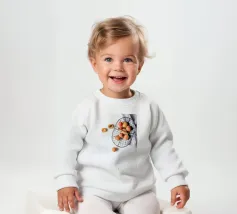 Our baby sweatshirts are made from 85% organic cotton and 15% recycled polyester.
