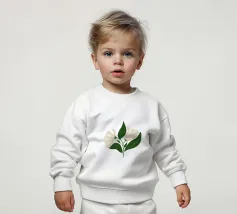 Our baby sweatshirts are made from 85% organic cotton and 15% recycled polyester.