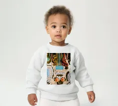 Our baby sweatshirts are made from 85% organic cotton and 15% recycled polyester.