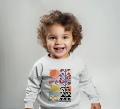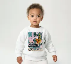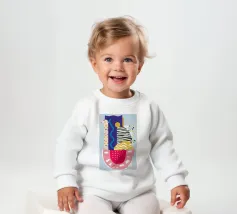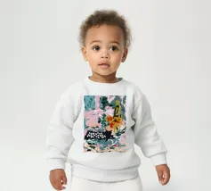Our baby sweatshirts are made from 85% organic cotton and 15% recycled polyester.
