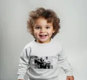Our baby sweatshirts are made from 85% organic cotton and 15% recycled polyester.